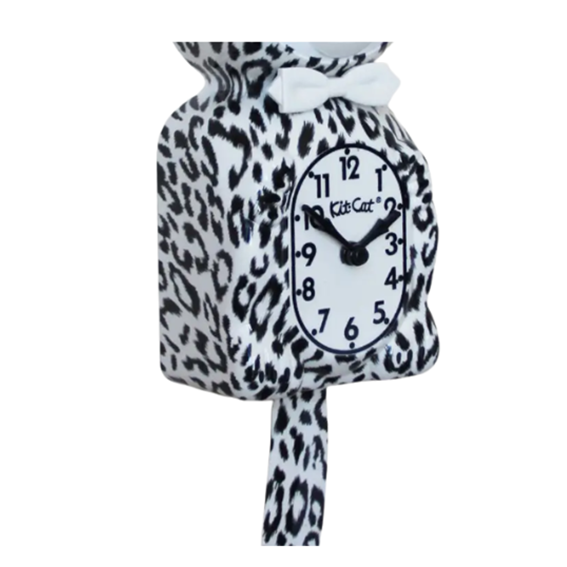 Internationellt känd som “Snow Leopard Kit Cat Clock” och “Exotic Pet Collection – Snow Leopard Edition.”